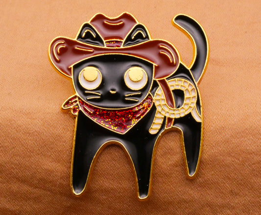 Cowboy Kitty Cat Hat Lasso Enamel Metal Button 31x37mm