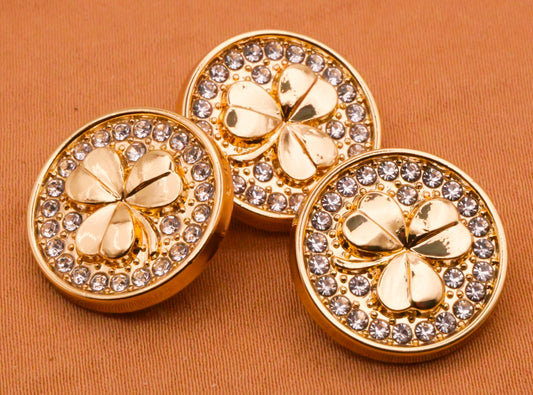 Shamrock Clover Rhinestone Pave Shiny Gold Metal Button 17mm
