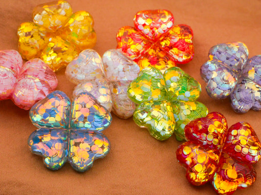 Shamrock Clover Green Glitter Plastic Set of Ten Buttons 14-21mm