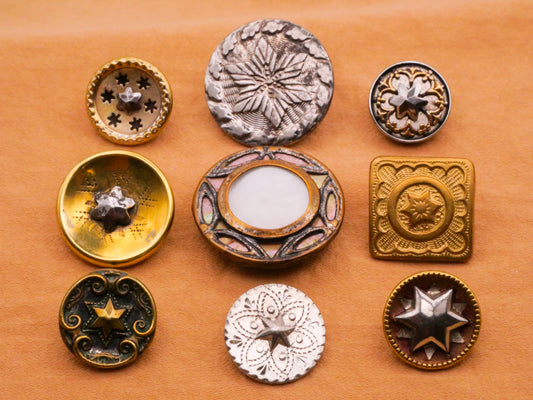 Star Six Point Star of David Steel Cut Antique Metal Button Various 13-23mm