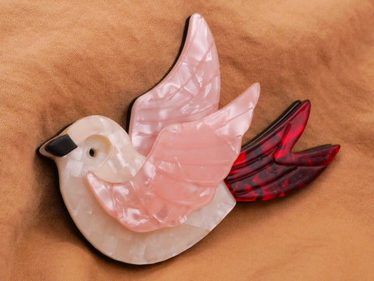 Bird Flying Pink Red White Acrylic Large Button 50x75mm