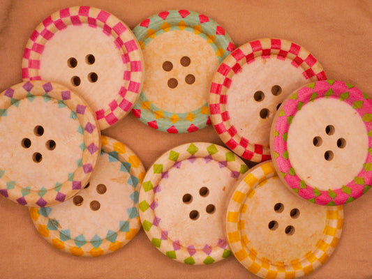 Checkerboard Edge Multi-Color Wood Large Assorted Set of Four Buttons 40mm
