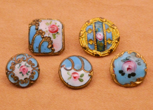 Rose Pink Aqua Enamel Cloisonné Antique Metal Button Various 9-11mm