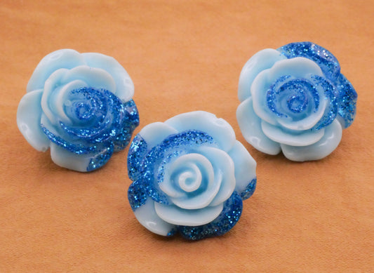 Rose Glitter Blue Pink Plastic Set of Three Buttons 20mm