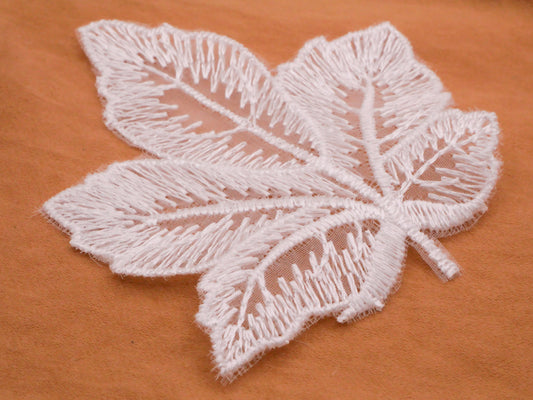 Leaf White Lace Fabric Applique Embellishment 73x78mm