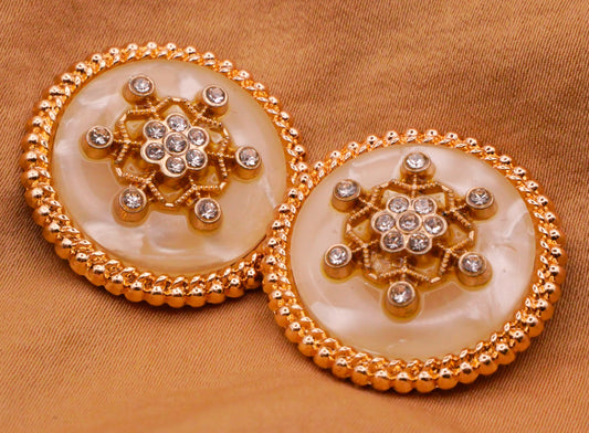 Snowflake Rhinestone Marbled Ivory Plastic Gold Metal Button 25mm