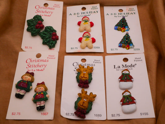 Christmas Snowman Tree Reindeer Carded Art Stone Pair of Buttons Various 17-29mm