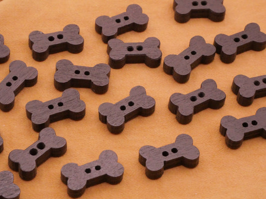 Dog Bone Brown Wood Set of Twenty Buttons 8x15mm