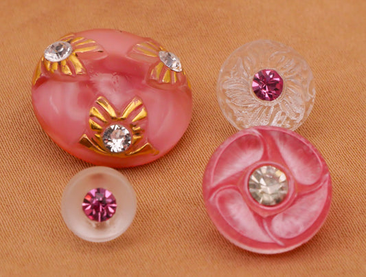 Pink Frosted Glass Rhinestone Vintage Button Various 8-18mm