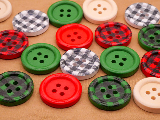 Plaid Check Christmas Wood Assorted Set of Twenty Buttons 20mm