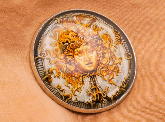 Medusa Snake Gold Silvermith Sculpture Vincenzo Gemito Glass Dome Metal Large Button 32mm