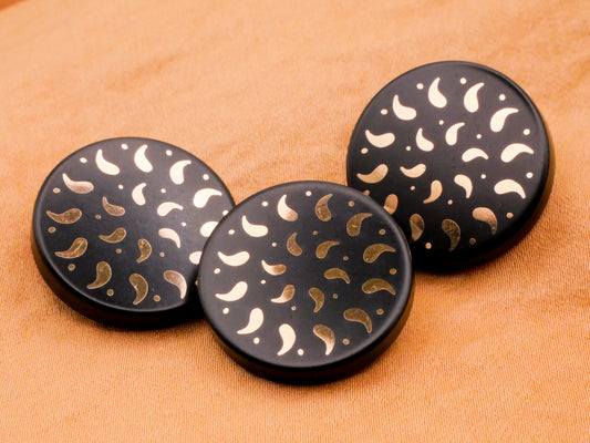 Carved Look Texture Mandala Geometric Vintage Black Plastic Button Various 27-37mm