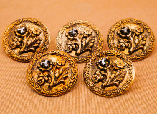 Flower Bouquet Steel Cut Victorian Metal Button 18mm