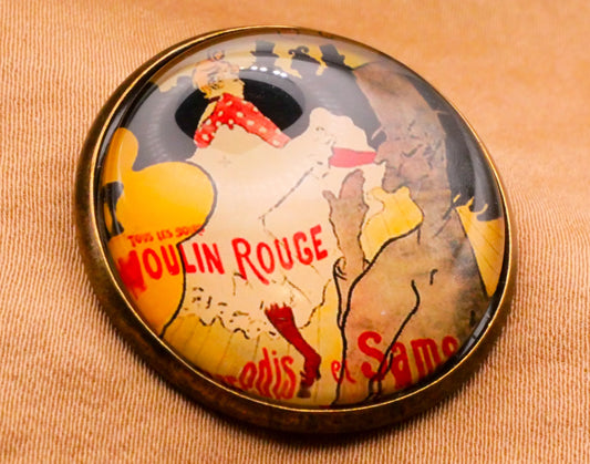 Moulin Rouge Cancan Dancer Paris France Glass Dome Metal Button 28mm