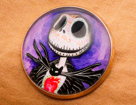 Nightmare Before Christmas Jack Skellington Sugar Skull Glass Dome Silver Metal Button 27mm