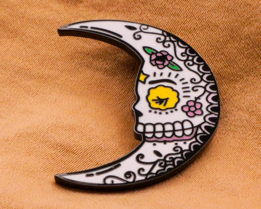 Crescent Moon Sugar Skull Skeleton Metal Button 23x30mm