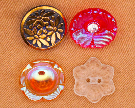 Flower Transparent Glass Rhinestone Vintage Button Various 18mm