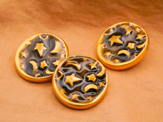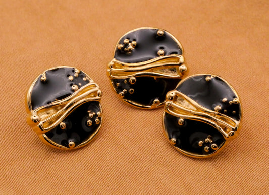 Abstract Planet Black Enamel Gold Metal Button 15mm