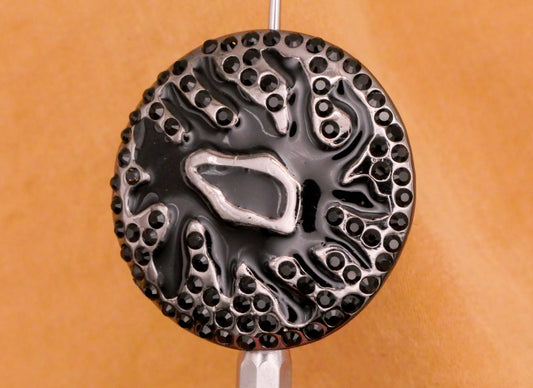 Amoeba Rhinestone Pave Black Enamel Metal Button 28mm