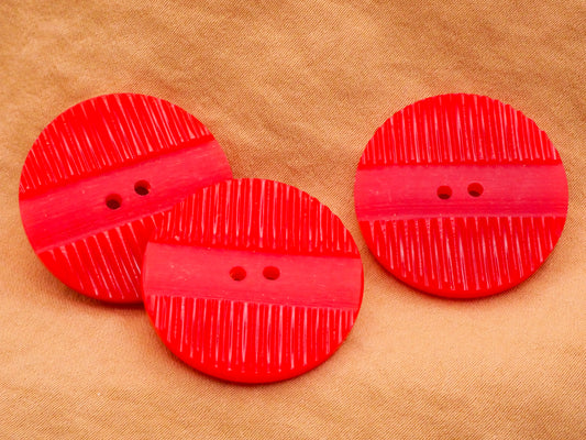 Red Machine Carved Grooves Vintage Sew-Thru Button 28mm