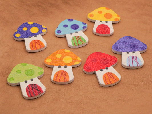 Mushroom Fairy House Colorful Wood Assorted Set of Four Buttons 21x25mm