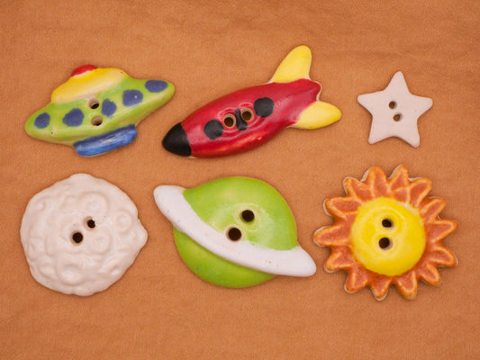Outer Space Planet Moon Star Sun Rocket UFO Hand-Painted Ceramic Button Various 17-39mm