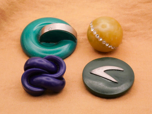 Celluloid Space Travel Blue Green Rhinestone Extruded Early Plastic Vintage Button Various 21-34mm