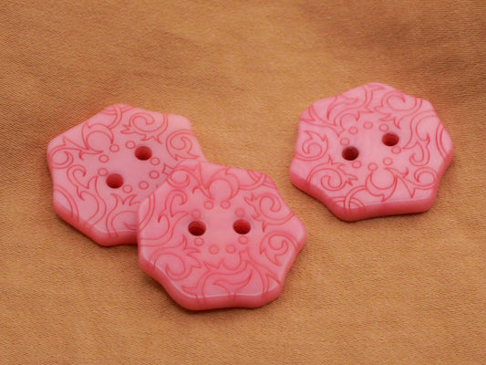 Pink Polygon Etched Filigree Plastic Sew-Thru Button 22mm