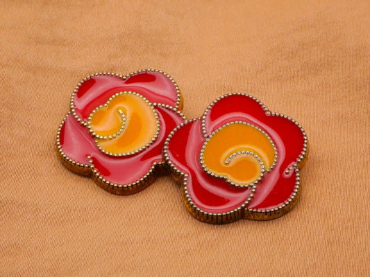 Flower Red Yellow Enamel Gold Metal Button 24mm