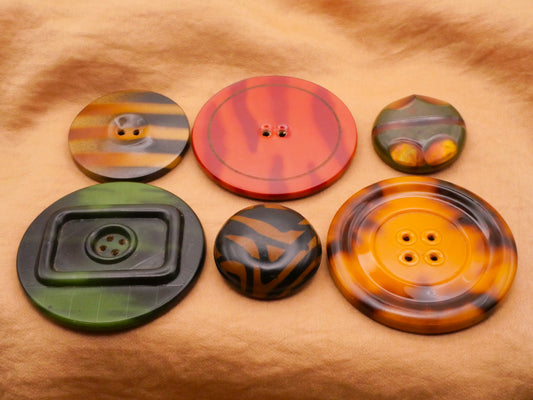 Celluloid Ikat Zebra Air Brush Glow Bubble Early Plastic Vintage Button Various 29-51mm
