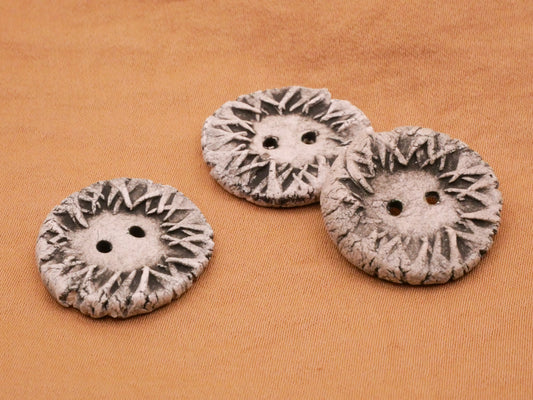 Handmade Flower Grey Stoneware Button 21mm