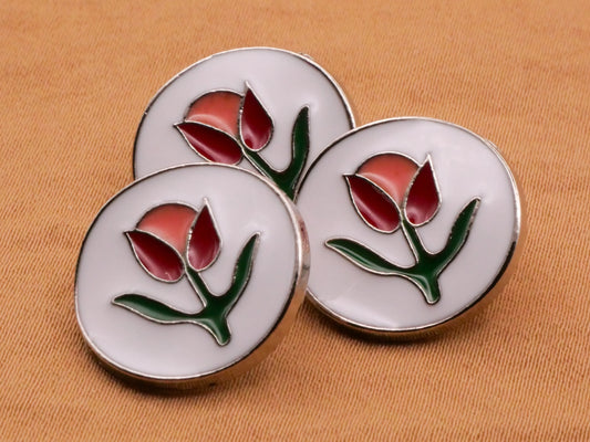 Tulip Flower Magenta Coral Enamel Metal Button 17x18mm