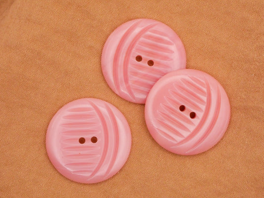 Crescent Moon Carved Look Pink Plastic Vintage Button 22mm