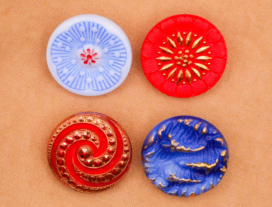 Swirl Flower Wave Glass Red Blue Gold Vintage Button Various 18mm