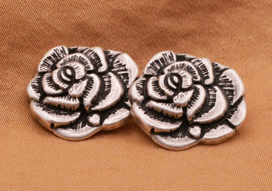 Rose Bloom Flower Antiqued Silver Metal Button 16x17mm