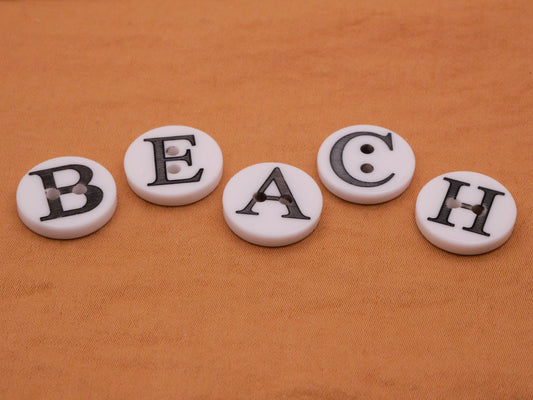 Beach Verbal Letters Plastic Set of Five Buttons 15mm