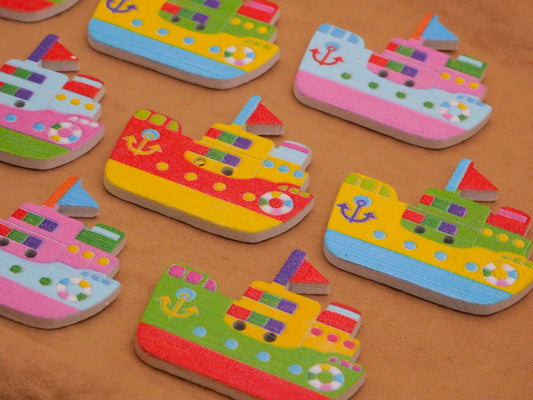 Ship Anchor Nautical Colorful Wood Assorted Set of Ten Buttons 30x31mm