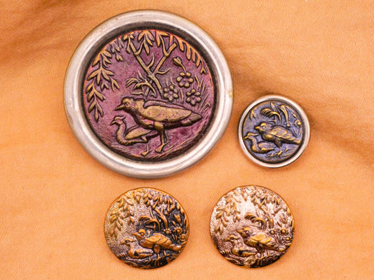 Birds Scene Tinted Victorian Metal Button Various 16-37mm
