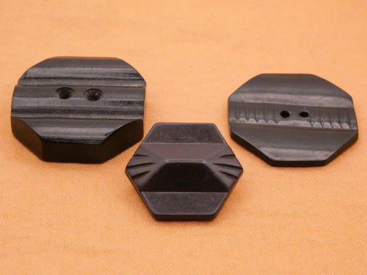 Polygon Hexagon Octagon Black Early Plastic Button Various 20-28mm
