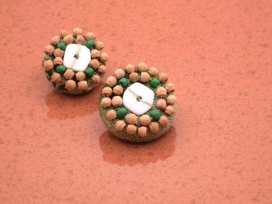 Beaded Shell Fabric Vintage Buttons Pair 16-18mm