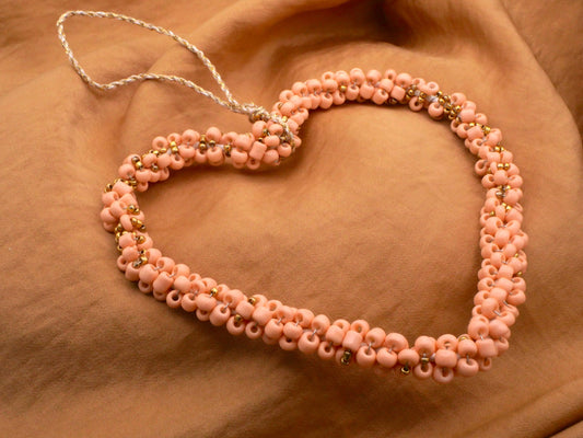 Beaded Heart Ornament Peachy Pink 103x112mm
