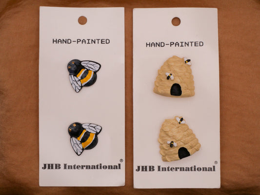 Bee Bumble Hive JHB Hand-Painted Plastic Metal Carded Buttons Various 17-22mm