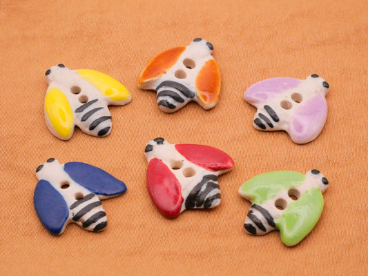 Bee Colorful Ceramic Hand-Painted Sew-Thru Button Various 18mm