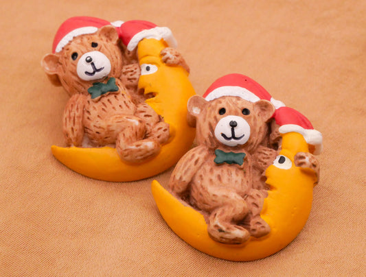 Bear Crescent Moon Santa Hat Vintage Plastic Button 28x32mm