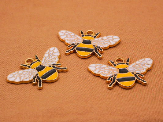 Bee Enamel Painted Gold Metal Set of Three Charms Embellishments 17x26mm
