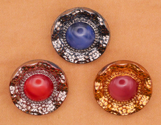 Red Plastic Gold Metal Set of Three Buttons 19mm