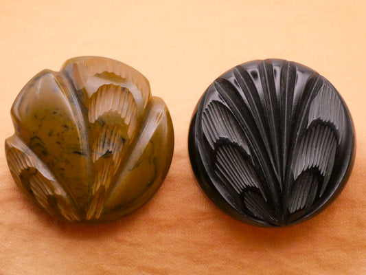 Plume Feather Carved Bakelite Early Plastic Large Button Various 43-44mm
