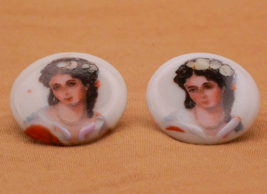 Portrait Brunette Lady Woman Ceramic Button Various 18-19mm