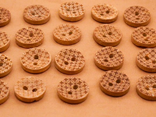 Quilted Diamond Laser Cut Coconut Shell Set of Twenty Buttons 11mm