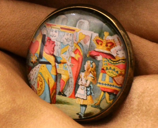 Queen of Hearts Alice In Wonderland Glass Dome Button 28mm